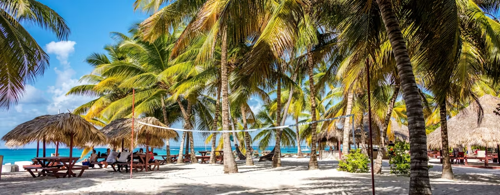 • Rejs łodzią motorową na przepiękną plażę Saony gdzie palmy tworzące kształt serca, wrastające w piasek i kilka metrów dalej wyrastające w górę będą w zasięgu krótkiego spaceru.